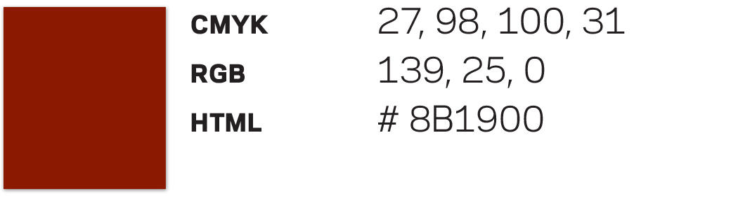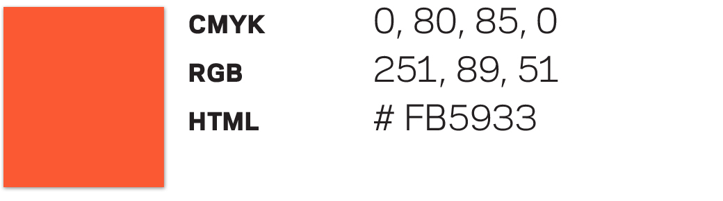 Rød-oransje. NB: 31. august 2021 ble RGB og HTML fargekodene for den rød-oransje fargen justert. Dette er gjort for at digitale applikasjoner skal være i henhold til kravene om universell utforming. De øvrige fargekodene er uendret.